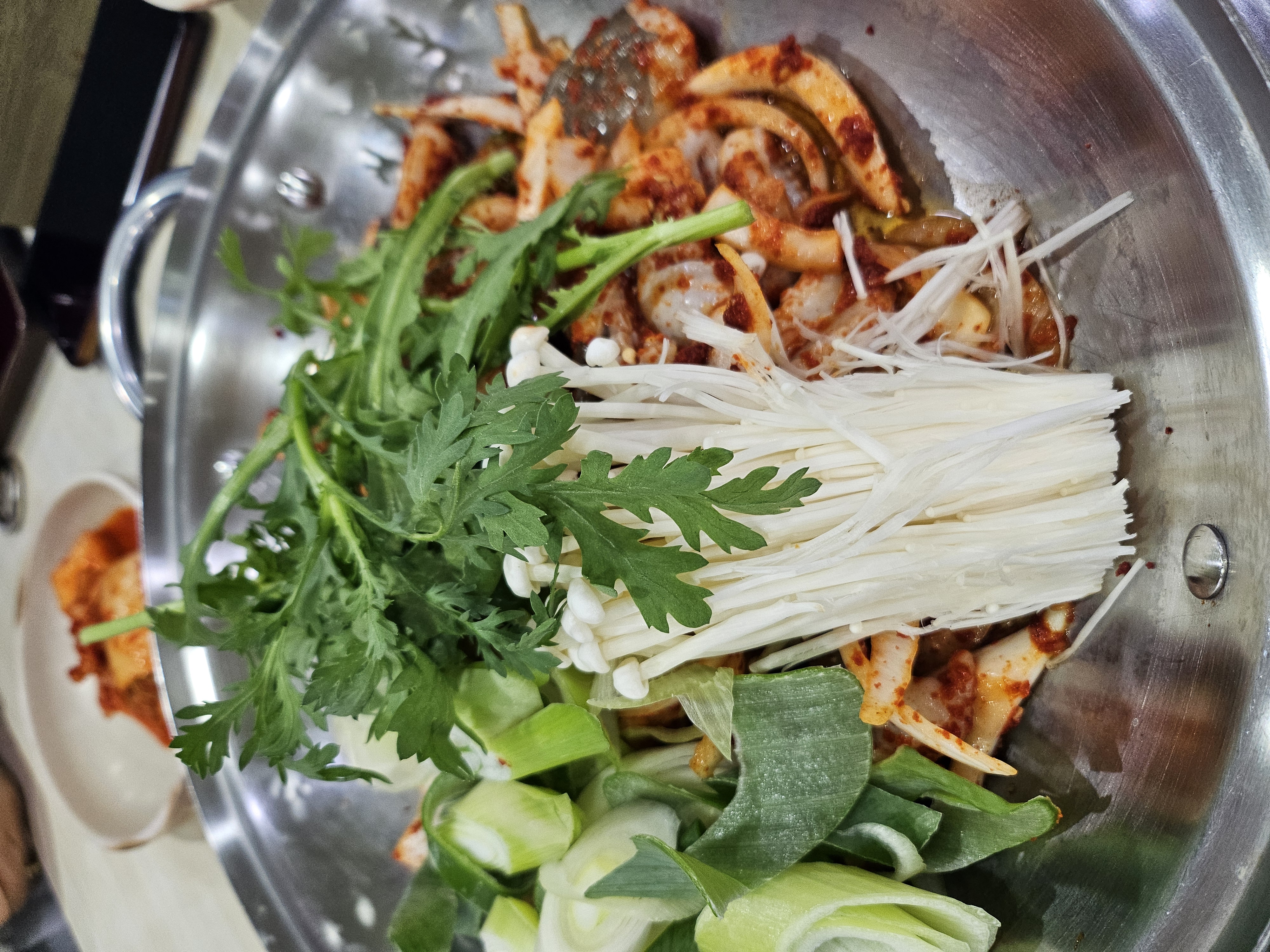 여기는 칼국수도 맛있지만, 진짜 인기 메뉴는 쭈꾸미구이! 얼큰한 국물과 매콤한 쭈꾸미 조합 추천해요.