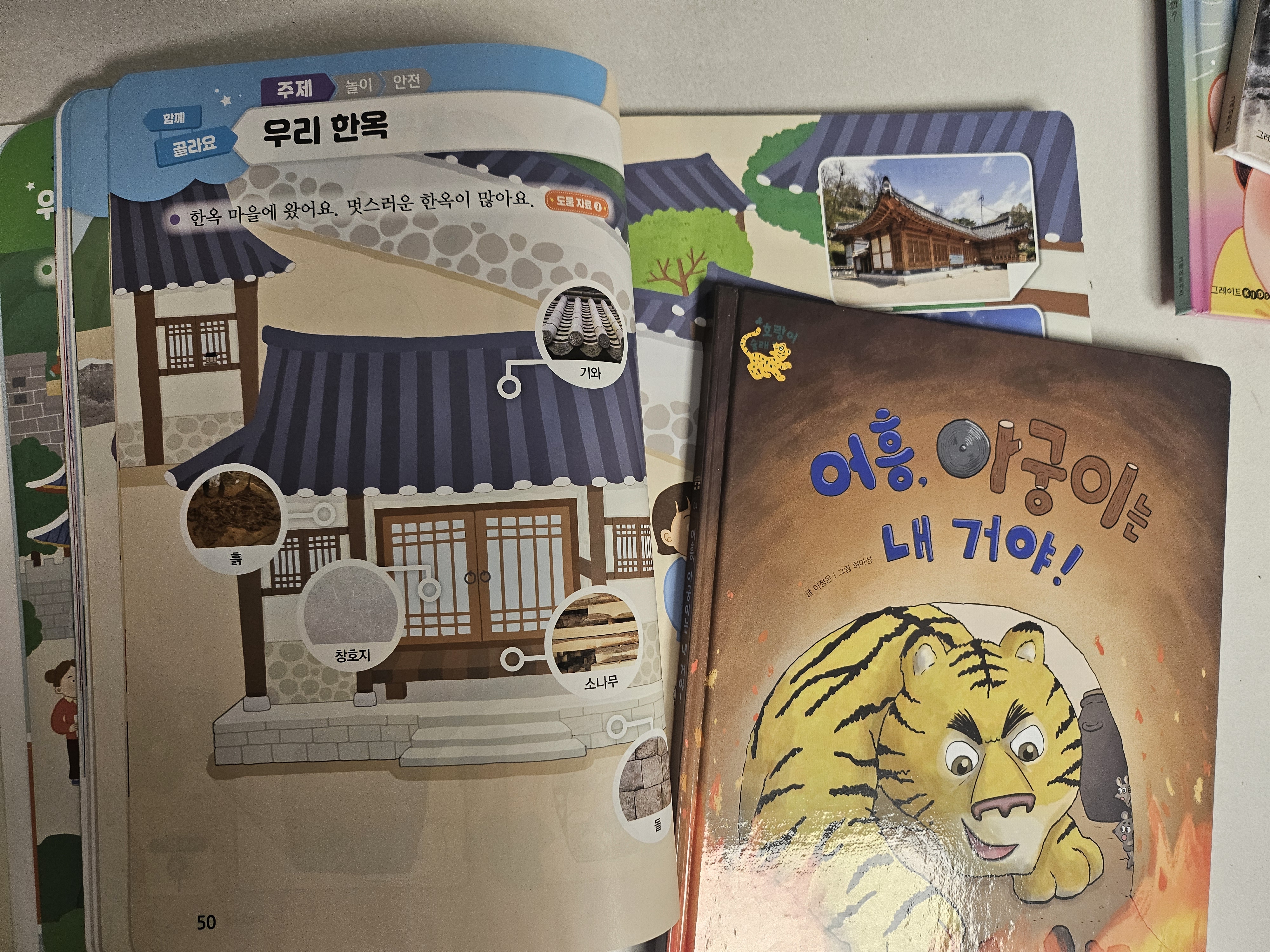 우리나라 교과서를 보면 음식, 한글, 한복, 한옥 등 호랑이술래에서 다루고있는 주제들로 이루어져있는 것을 확인할 수 있다. 또한 전통문화 체험이나 박물관 활동 등을 할때 연계하여 읽기 좋다.